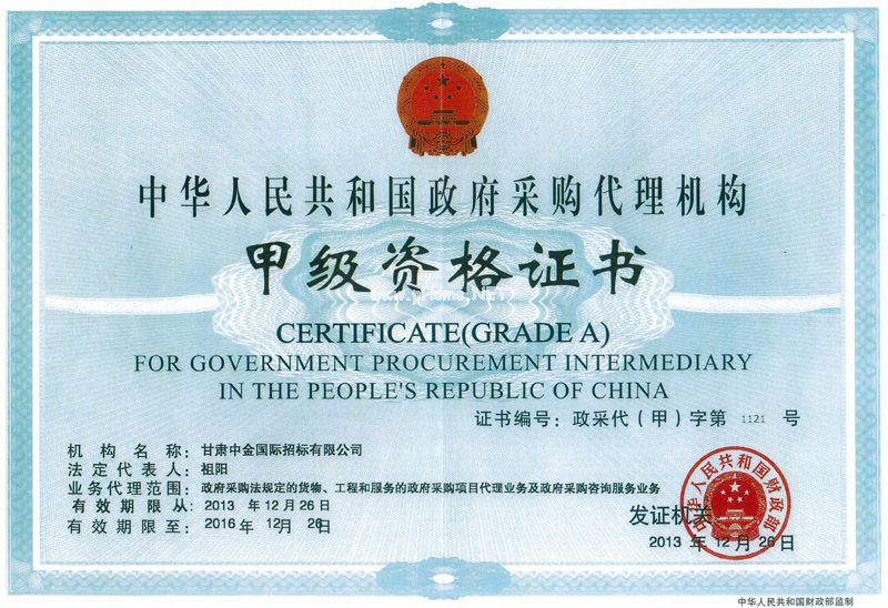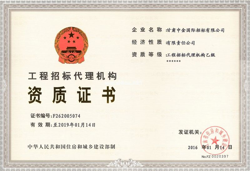 甘肅中金國際招標有限公司成立于2011年11月,注冊資金500萬元,于2012年5月取得由省財政廳頒發(fā)的政府采購代理機構(gòu)乙級資質(zhì)(政采代【乙】字第甘022號),并于2013年12月取得由中華人民共和國財政部頒發(fā)的政府采購代理機構(gòu)甲級資質(zhì)(政采代【甲】字第1121號),在2016年1月取得由甘肅省住房和城鄉(xiāng)建設(shè)廳頒發(fā)的工程招標代理機構(gòu)乙級資質(zhì)(F262005074);2015年4月取得機電產(chǎn)品國際招標代理資質(zhì),僅在短短幾年內(nèi)成為本行業(yè)發(fā)展速度最快的公司之一。 甘肅中金國際招標有限公司由海外留學(xué)回國學(xué)生擔任核心領(lǐng)導(dǎo),公司下設(shè)商務(wù)部、工程部、財務(wù)部及辦公室等業(yè)務(wù)部門,目前公司在職員工50余人,其中本科以上學(xué)歷占50%以上,擁有中高級國家技術(shù)職稱人員為19人。公司地處蘭州市繁華地段,交通非常便捷;辦公環(huán)境優(yōu)良,擁有寬敞明亮的開標大廳、評標會議室和會客室;計算機網(wǎng)絡(luò)管理辦公系統(tǒng),實現(xiàn)了全方位的辦公自動化;同時,公司擁有一支具有豐富招標經(jīng)驗的專業(yè)團隊,憑借過硬的專業(yè)知識、積極主動的服務(wù)意識、科學(xué)嚴謹?shù)墓ぷ髯黠L服務(wù)于省內(nèi)各行政機關(guān)、企事業(yè)單位,在招標服務(wù)過程中,我們兢兢業(yè)業(yè),踏實工作,嚴格遵守國家規(guī)定和程序進行相關(guān)招標服務(wù),受到了眾多業(yè)主及投標人的一致好評。 中金公司將以高效率、高質(zhì)量及好服務(wù)為各業(yè)主單位和投標人提供優(yōu)質(zhì)和專業(yè)的招標服務(wù)。